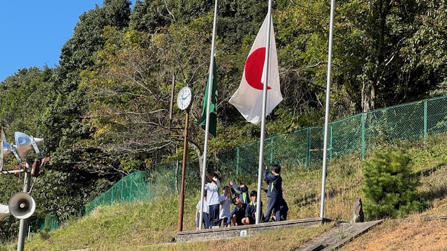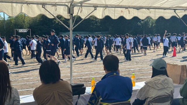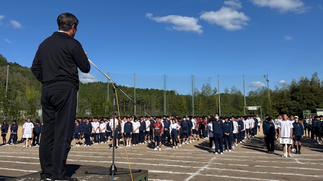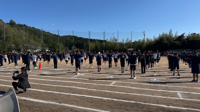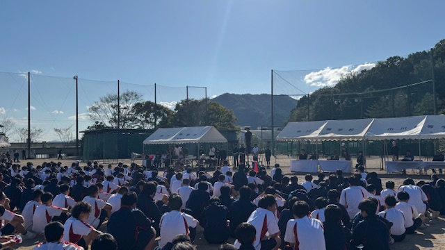 澄み渡る青空のもと、全校生徒がグラウンドに集合しました。