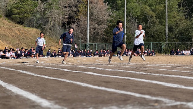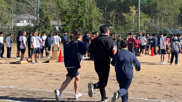 今年は先生も招集され、生徒と一緒になってグラウンドを駆け巡りました。