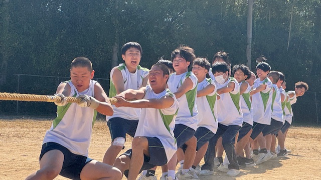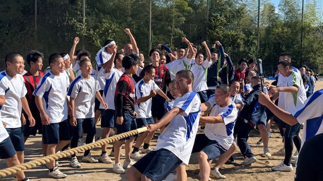 クラス対抗の綱引きは予選から大いに盛り上がり、勝利チームは午後から行われる決勝トーナメントに向けて士気を高めていました。