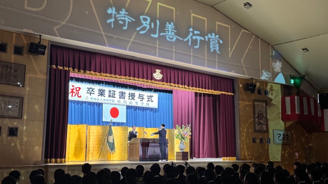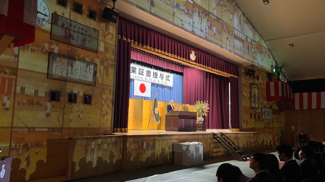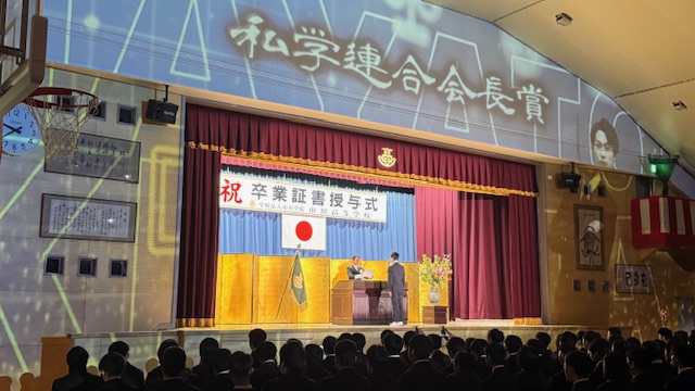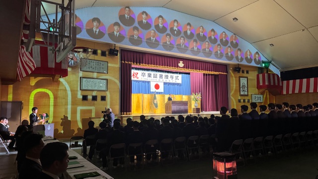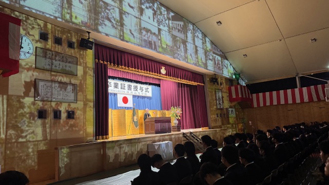 「会場にいる全員が前を向く卒業式」をモットーに、今年度もプロジェクションマッピングを活用した卒業式を挙行しました。