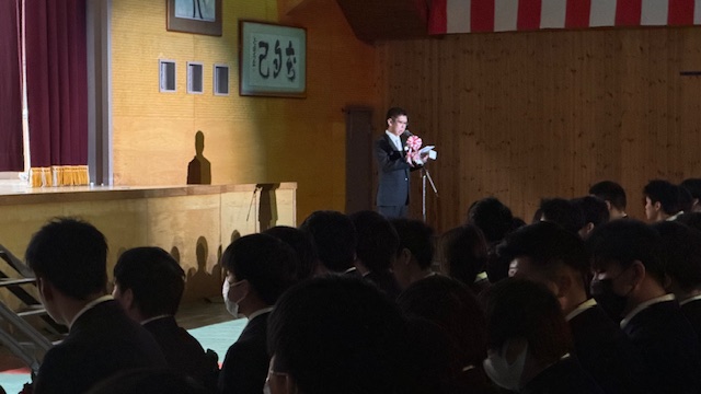 来賓を代表して、本校同窓会(真人会)会長の藤本肇様より、心温まる祝辞を頂戴しました。