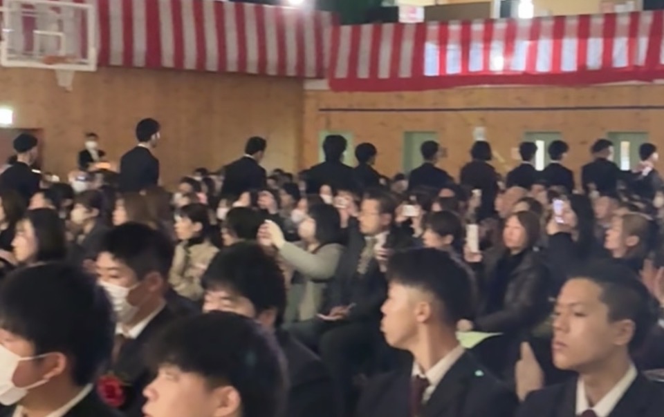 舞台周辺には、仲間と過ごした高校生活を撮り溜めた映像が映し出され、3年間を振り返り、静かに涙する生徒もいました。