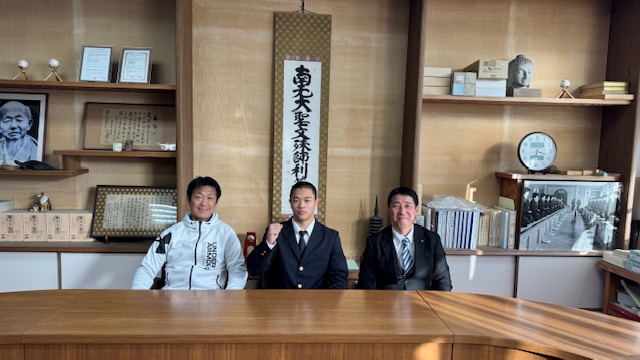 校長室にて、1月24日(土)に開催される第67回近畿高等学校柔道新人大会(個人試合 -73kg級)に出場する、橋本君(2学年)の激励会を行いました。